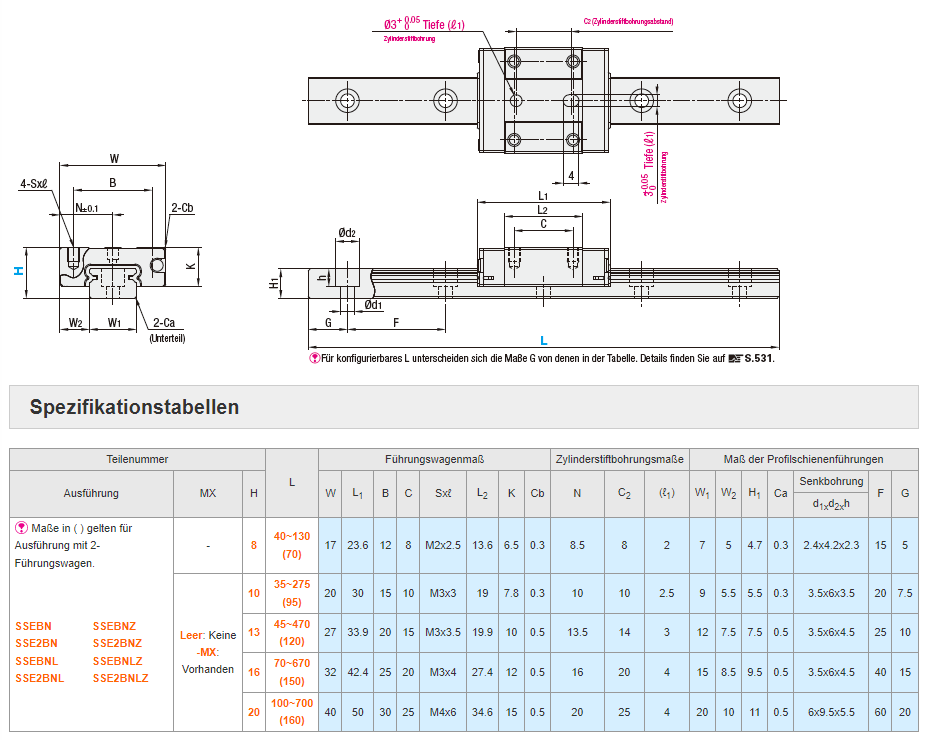 SSE2V-A16- - Linearführung mit 2 Wagen